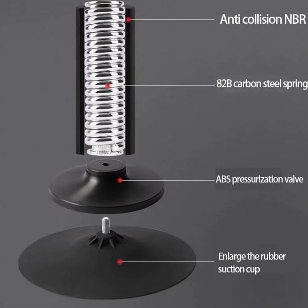 The speed ball stands 40 cm (15.74 in) high and features a 17.7 cm (6.96 in) suction cup with a heavy-duty 82B carbon steel spring. It also includes an inflatable bag on top and can be assembled in seconds.
